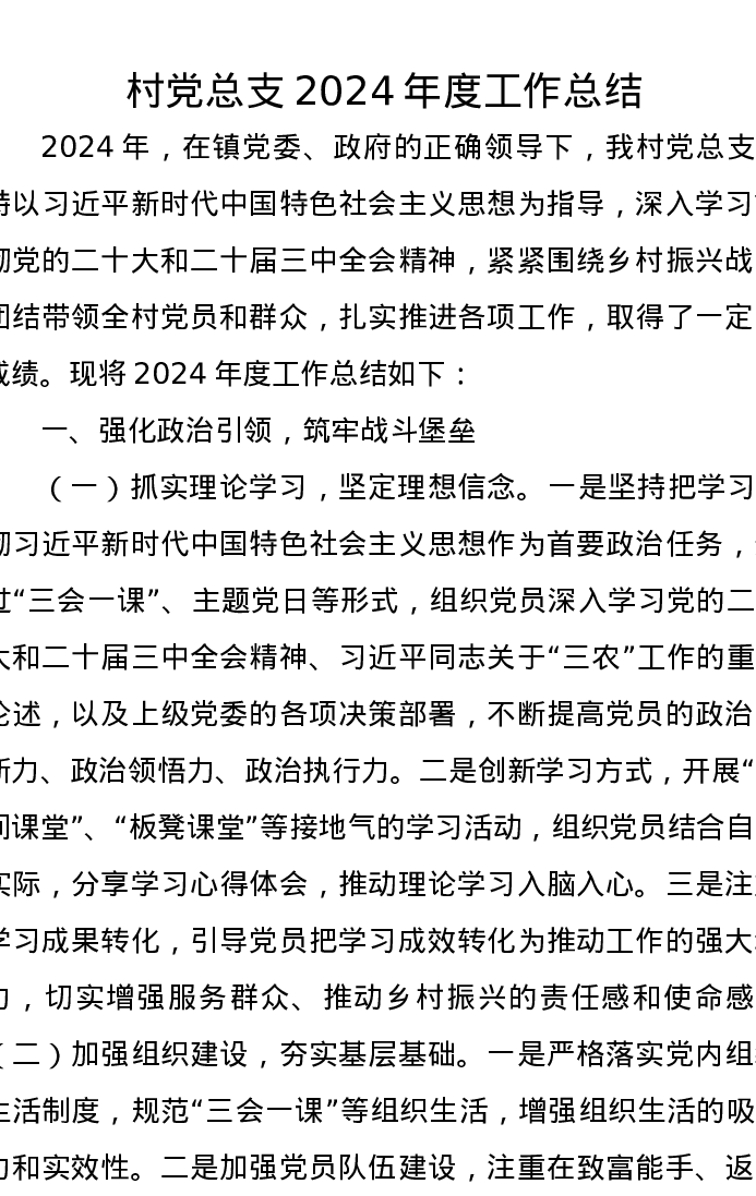 村党总支2024年度工作总结
