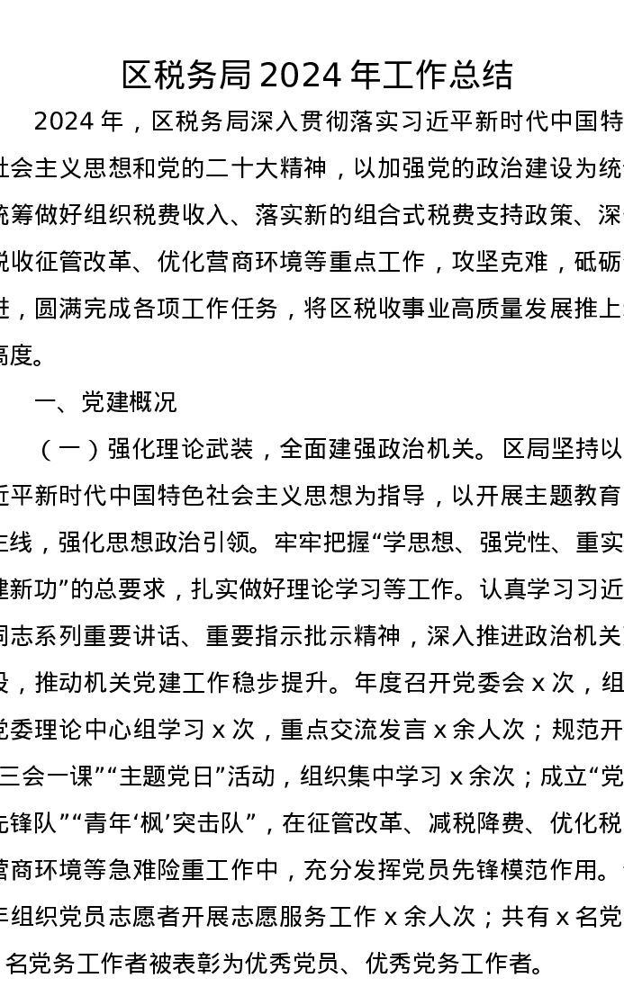 区税务局2024年工作总结