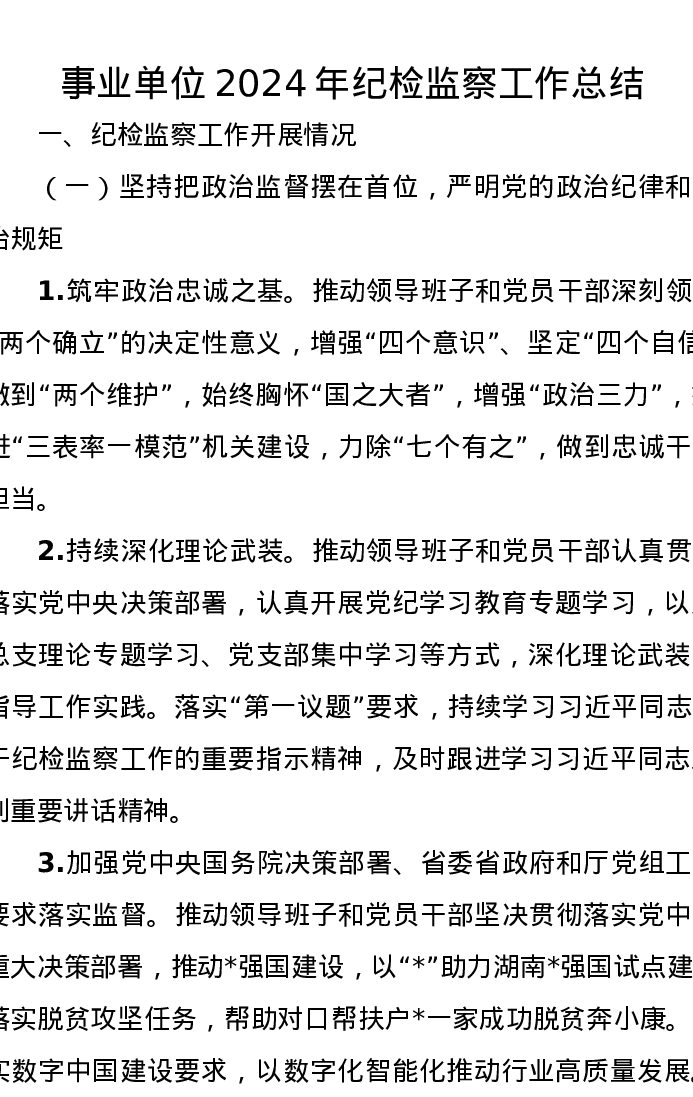 事业单位2024年纪检监察工作总结