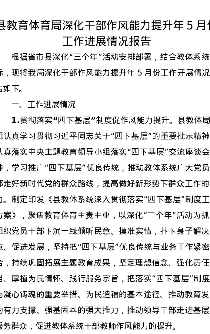 县教育体育局深化干部作风能力提升年工作进展情况报告