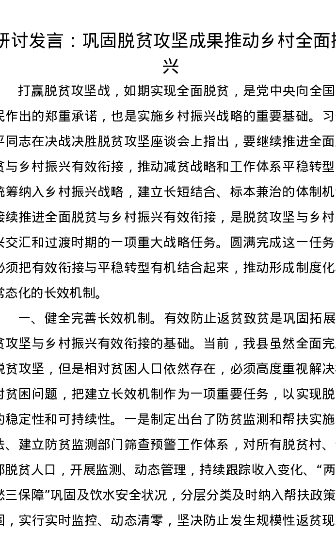 研讨发言:巩固脱贫攻坚成果推动乡村全面振兴