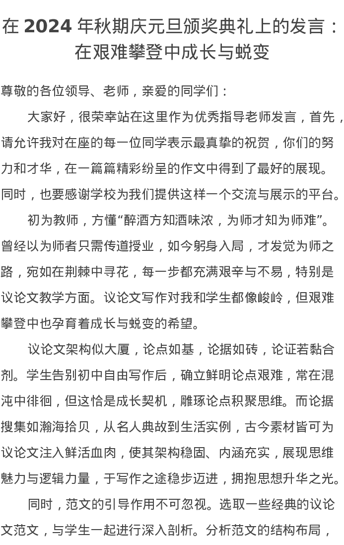 在2024年秋期庆元旦颁奖典礼上的发言:在艰难攀登中成长与蜕变