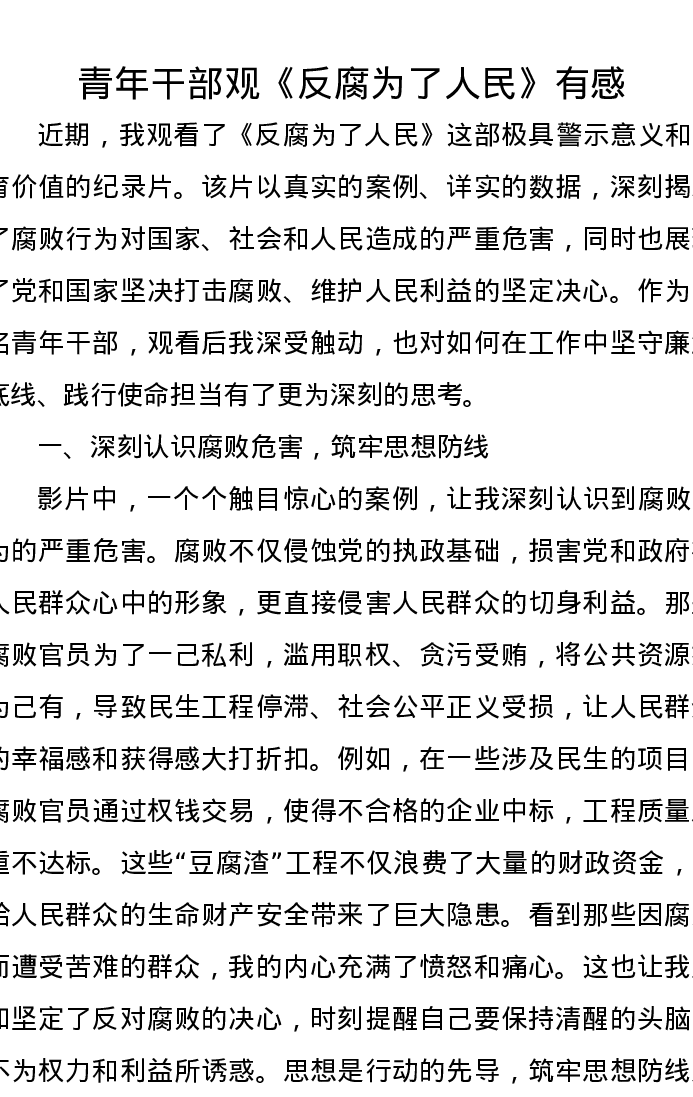 青年干部观《反腐为了人民》心得有感