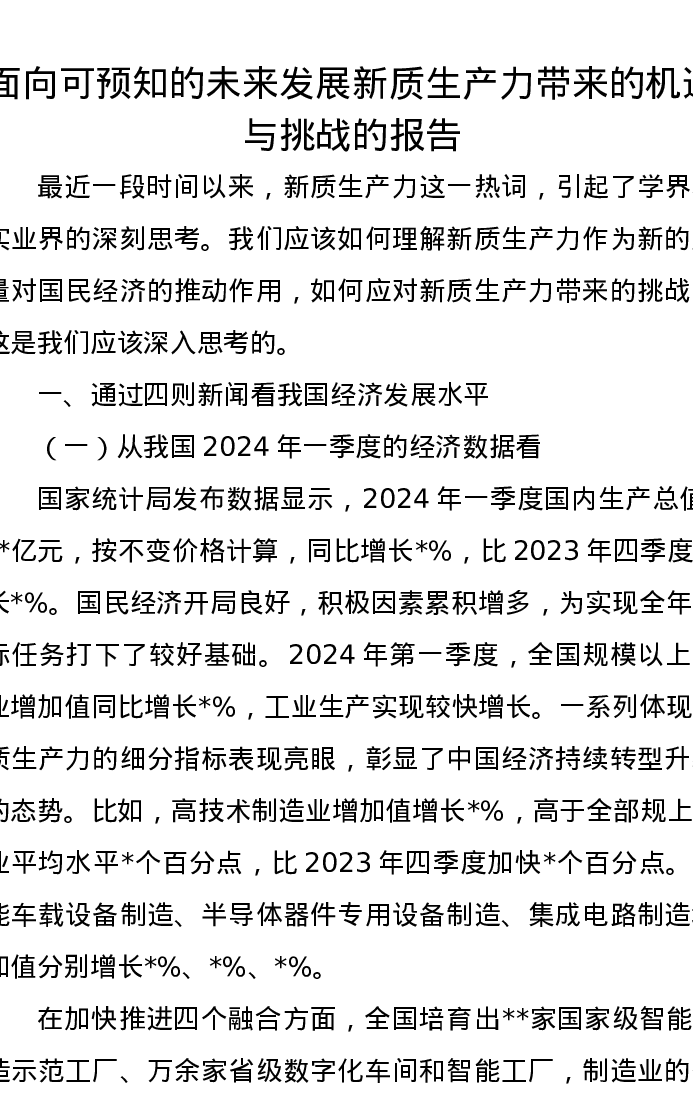 调研报告:面向可预知的未来发展新质生产力带来的机遇与挑战的报告