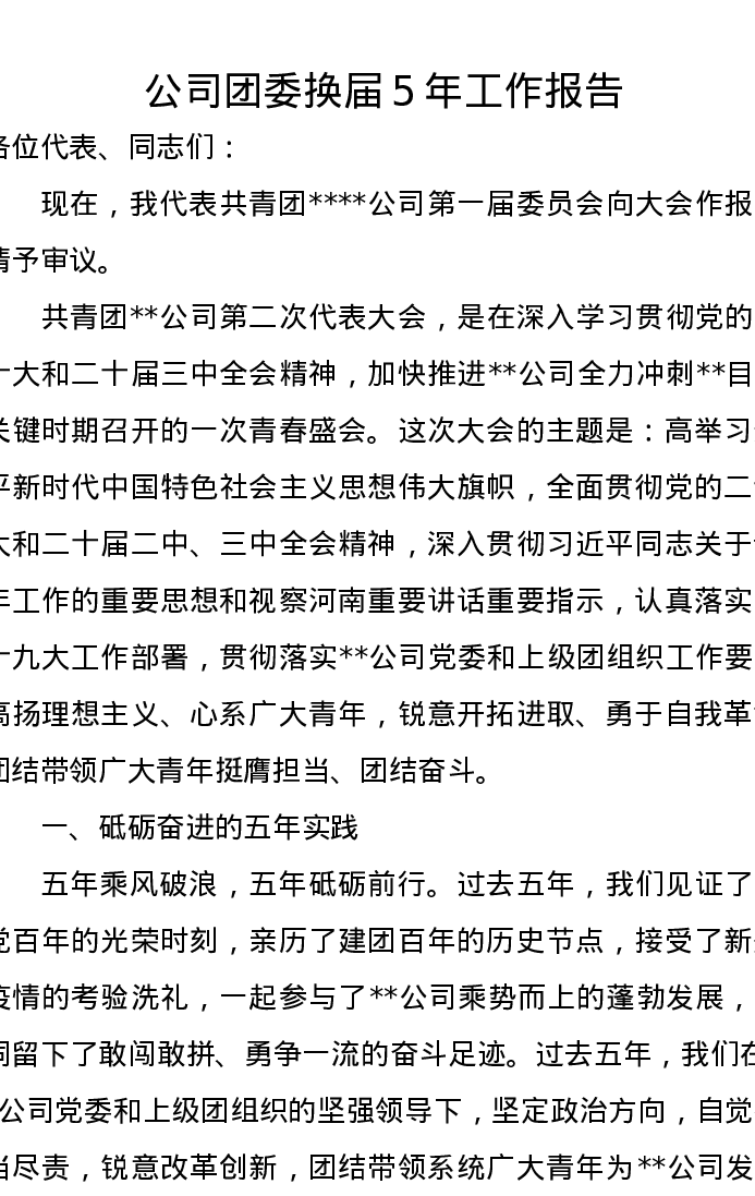 公司团委换届5年工作报告