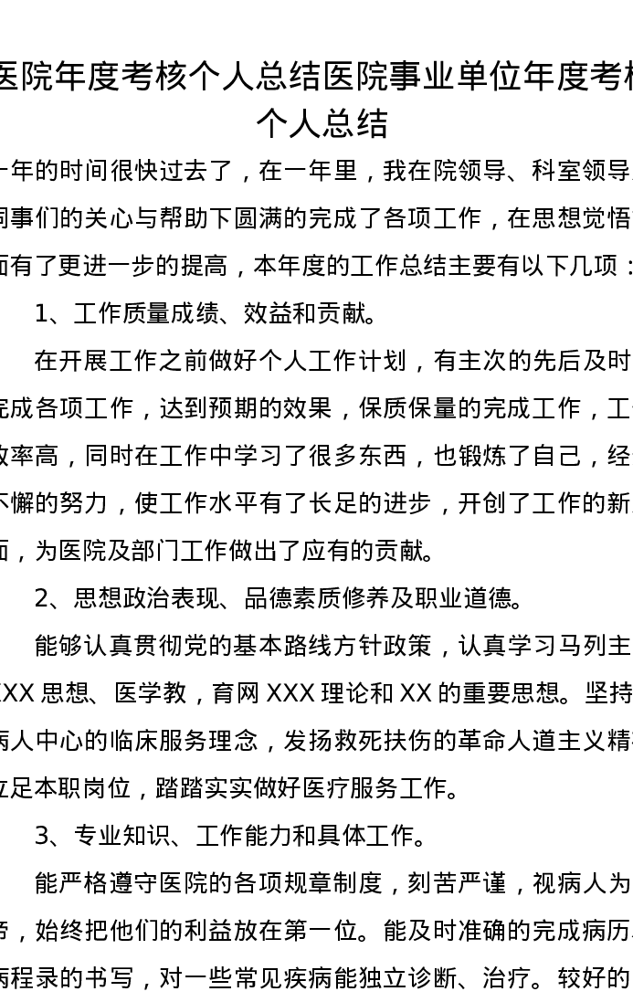 医院年度考核个人总结医院事业单位年度考核个人总结