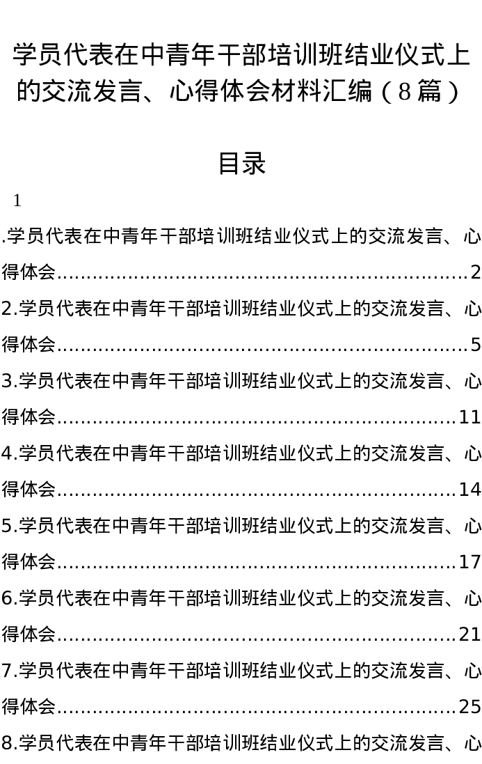 汇编:学员代表在中青年干部培训班结业仪式上的交流发言、心得体会8篇