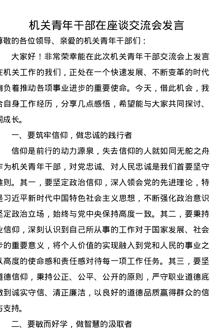 机关青年干部在座谈交流会发言