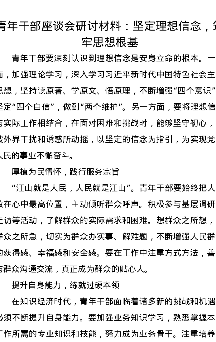 青年干部座谈会研讨发言材料:坚定理想信念,筑牢思想根基