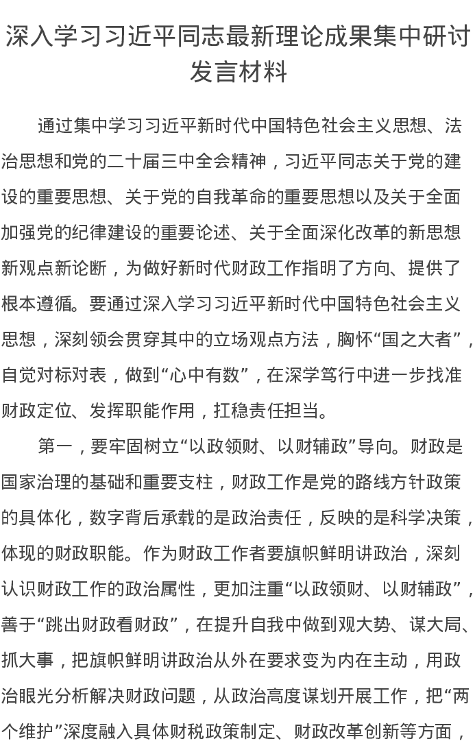 深入学习习近平总书记最新理论成果集中研讨发言材料
