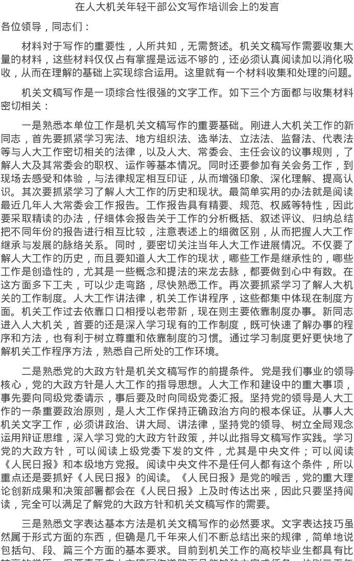 20220510在人大机关年轻干部公文写作培训会上的发言