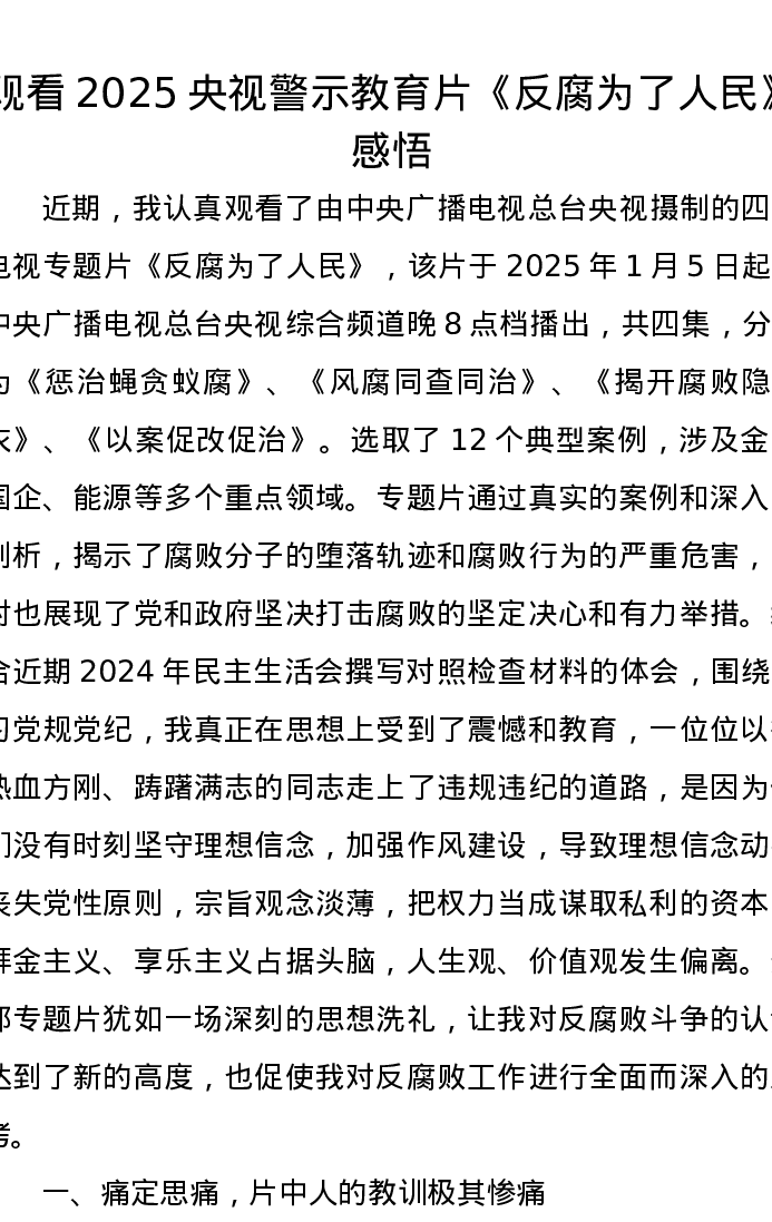 观看2025央视警示教育片《反腐为了人民》心得感悟