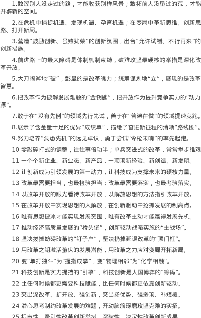 20220515【写作素材】“敢蹚别人没走过的路”“敢拓前人没垦过的荒”:改革创新类过渡句50例