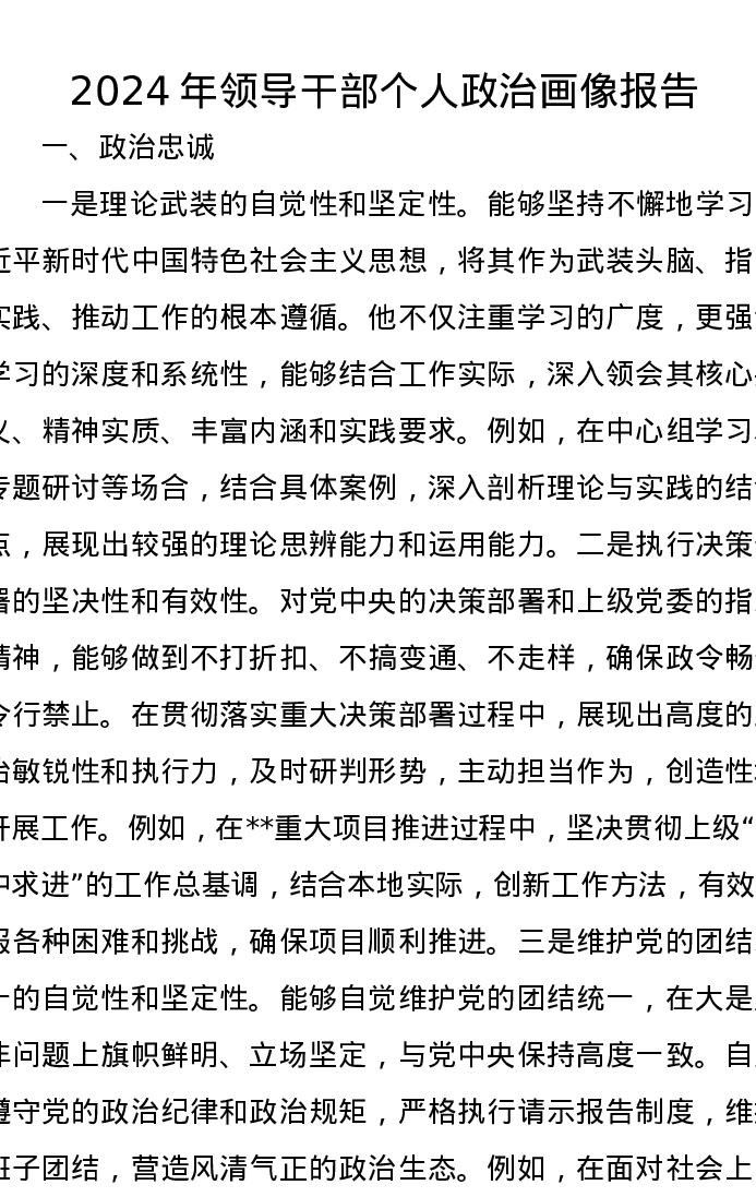 2024年领导干部个人政治画像报告