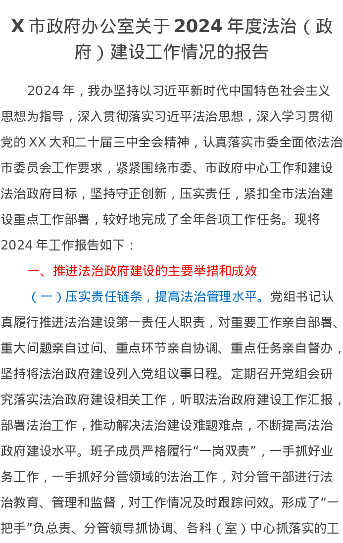 X市政府办公室关于2024年度法治(政府)建设工作情况的报告