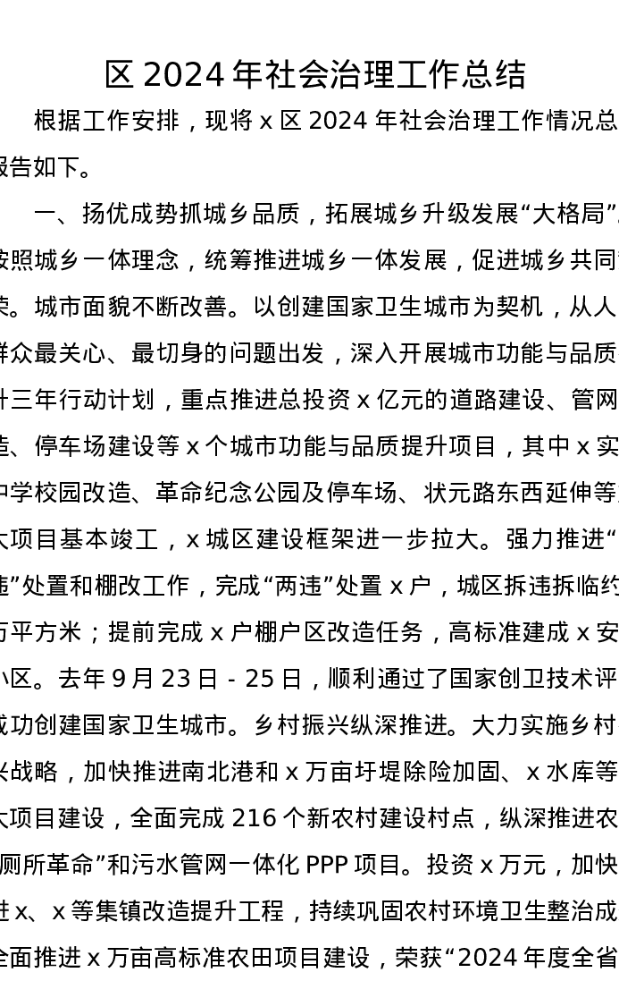 区2024年社会治理工作总结
