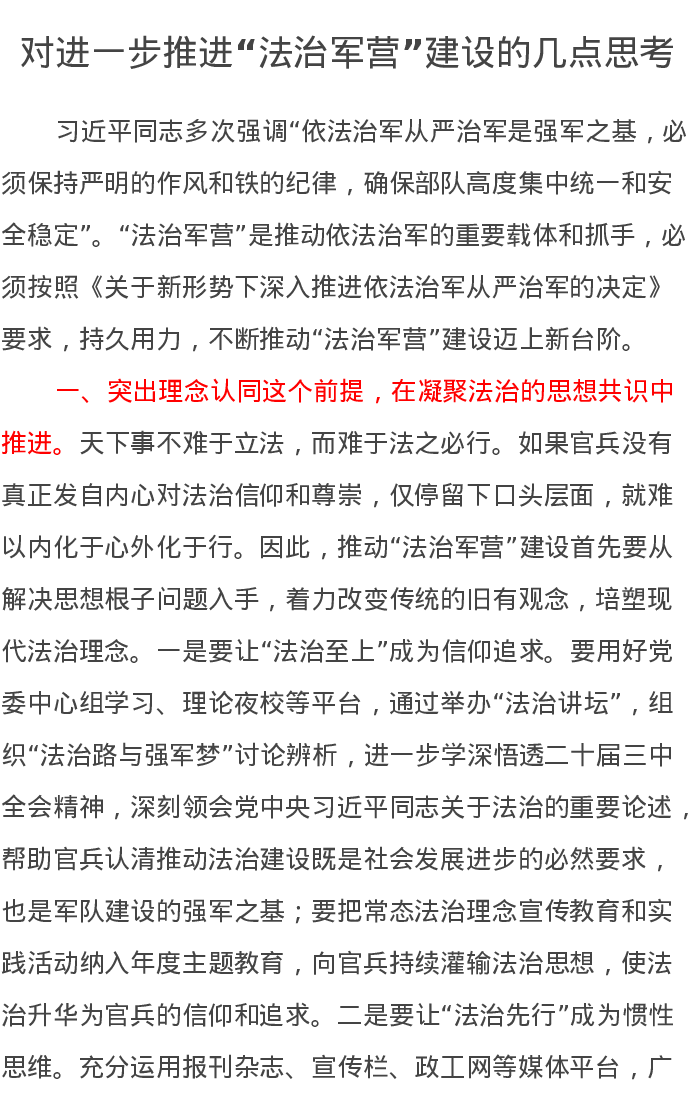 调研报告:对进一步推进“法治军营”建设的几点思考
