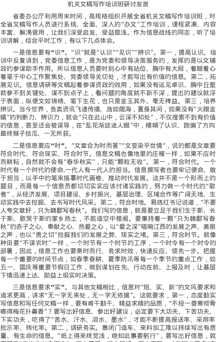 20220606机关文稿写作培训班研讨发言