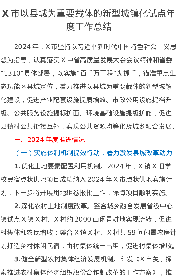 X市以县城为重要载体的新型城镇化试点年度工作总结