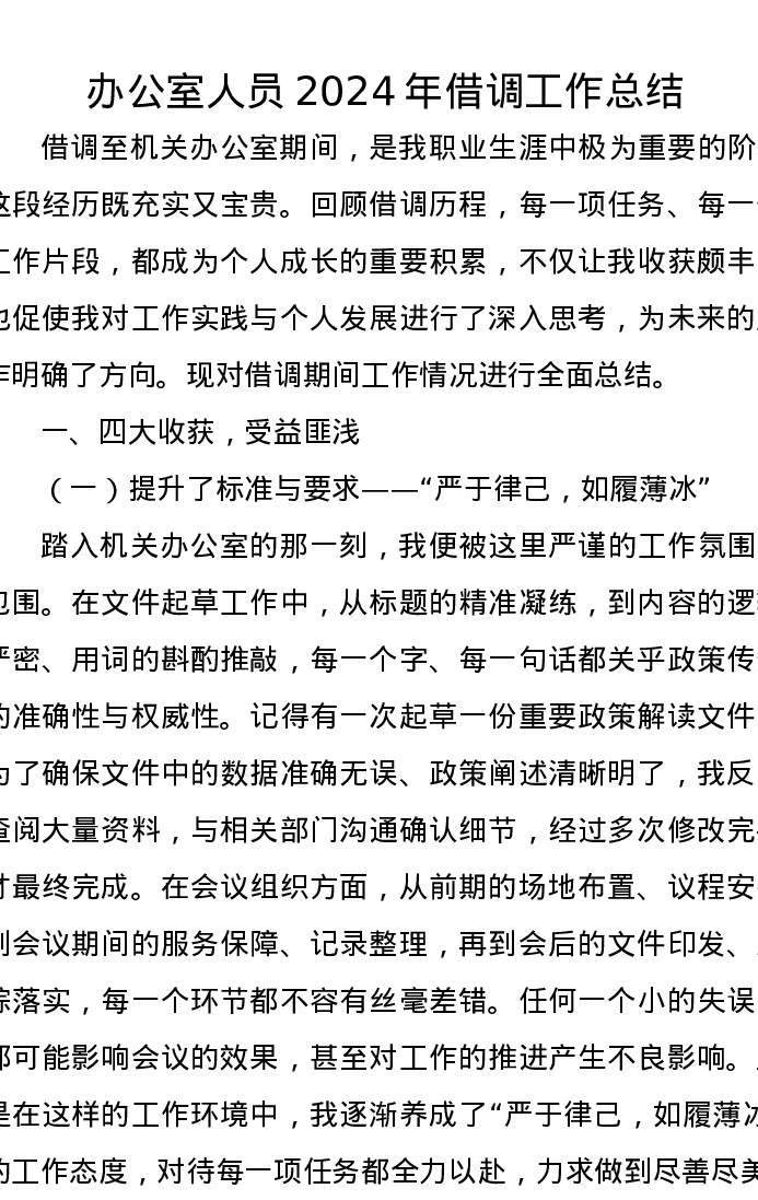 办公室人员2024年借调工作总结