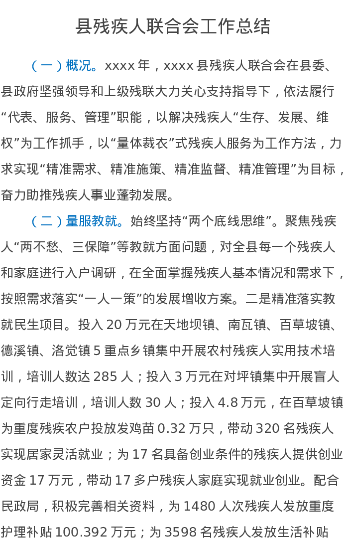 县残疾人联合会工作总结