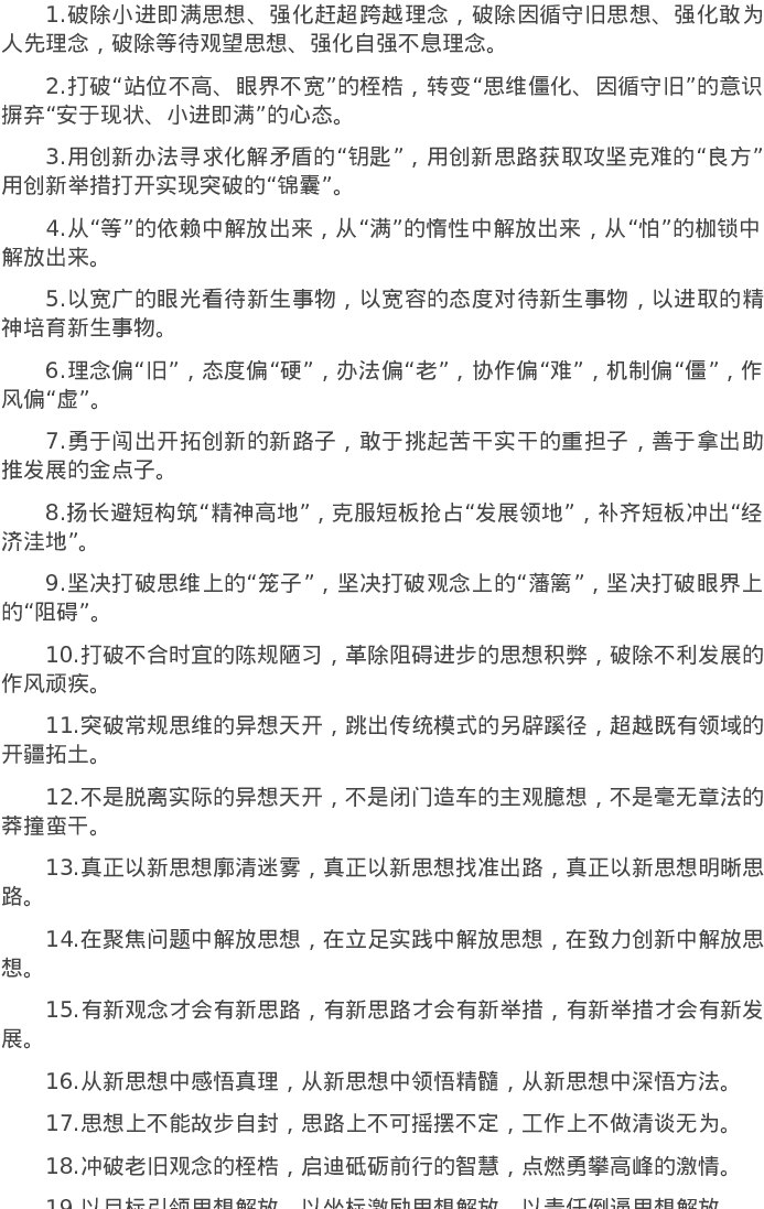20220618【写作素材】解放思想类排比句40例(2022年6月18日)
