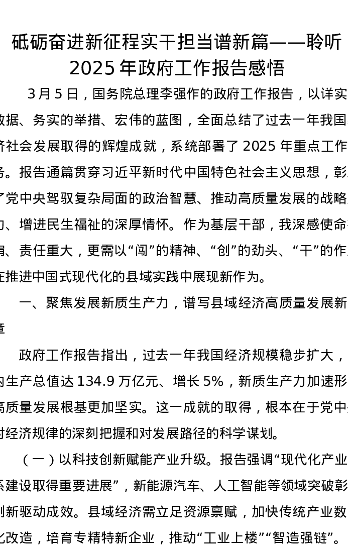 砥砺奋进新征程实干担当谱新篇聆听2025年政府工作报告心得感悟