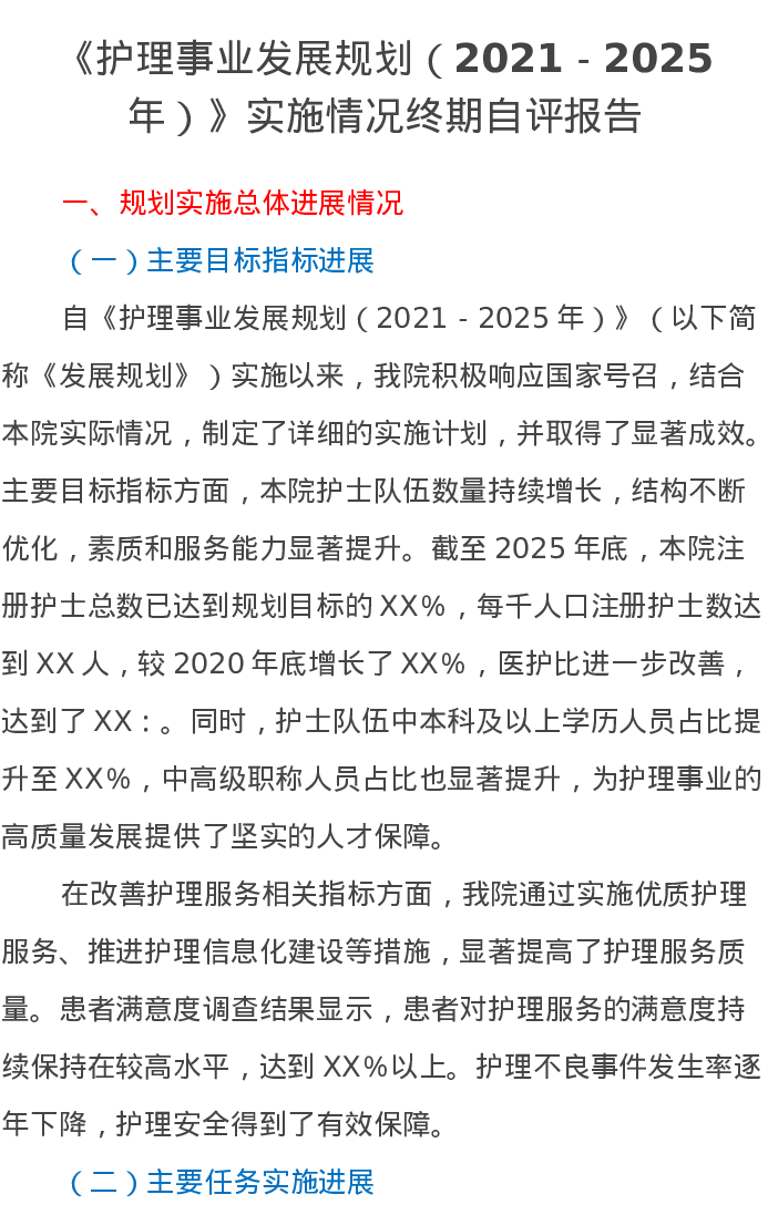 《护理事业发展规划(2021-2025年)》实施情况终期自评报告