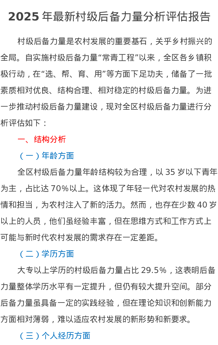 2025年最新村级后备力量分析评估报告