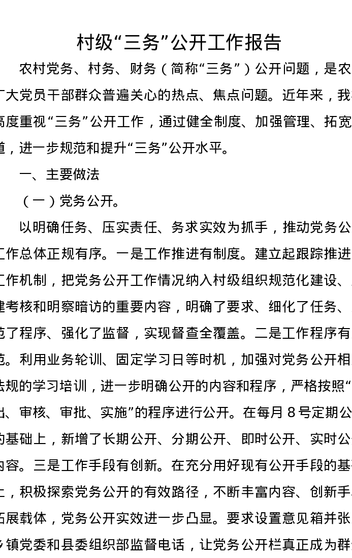 村级“三务”公开工作报告