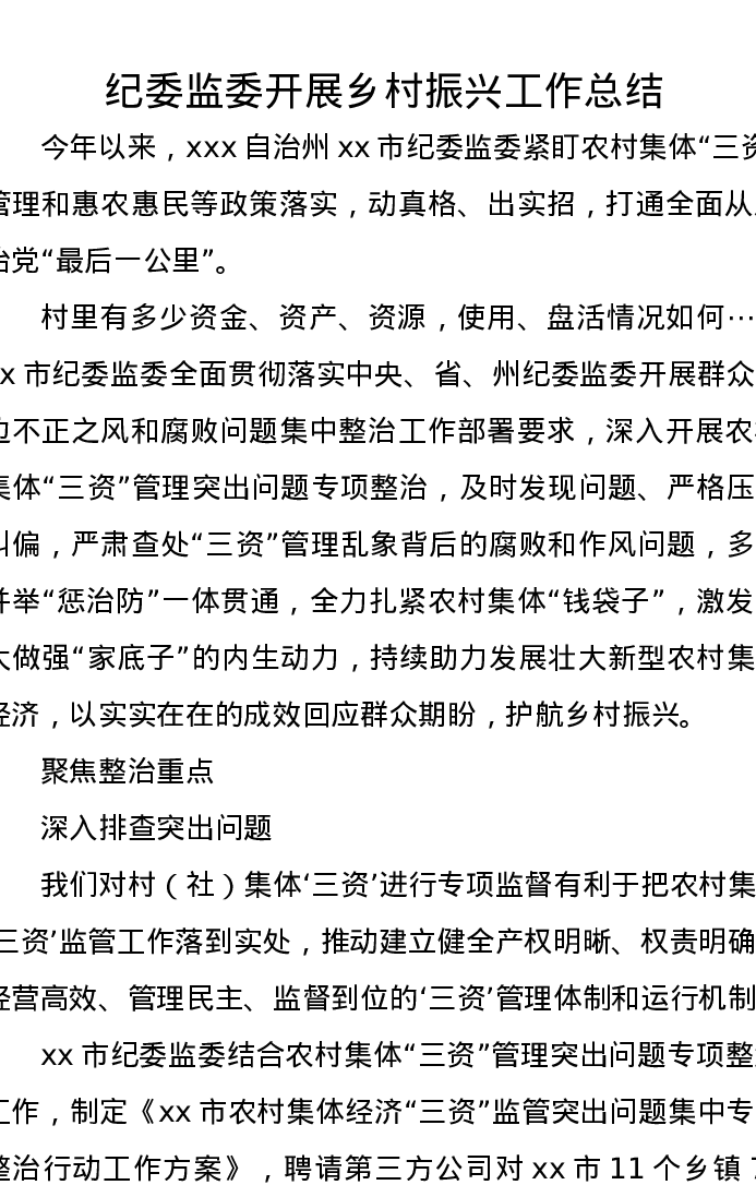 纪委监委开展乡村振兴工作总结