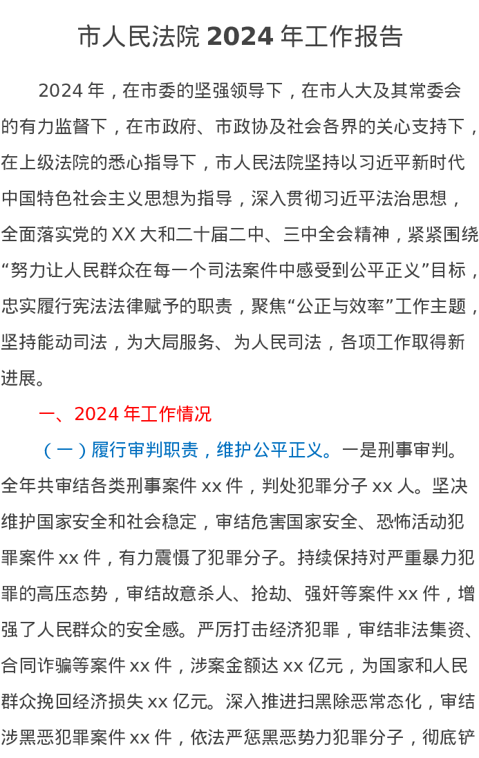 市人民法院2024年工作报告