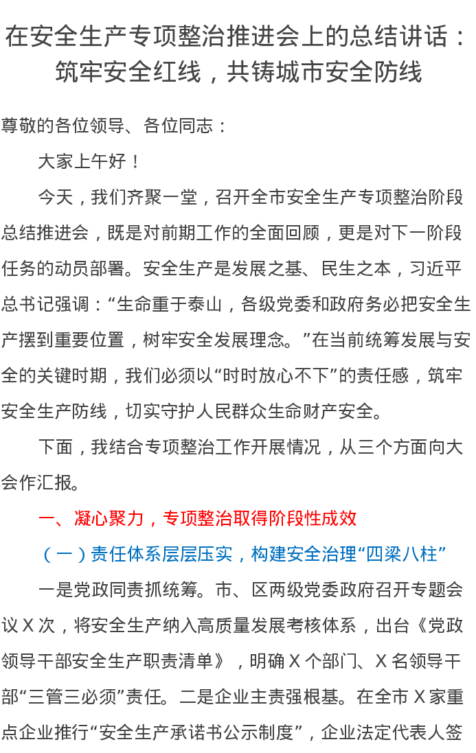 在安全生产专项整治推进会上的总结讲话:筑牢安全红线,共铸城市安全防线