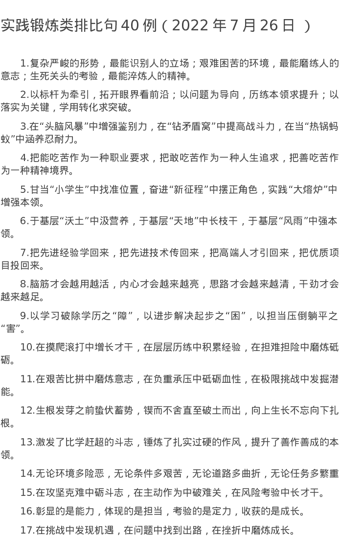 20220726【写作素材】实践锻炼类排比句40例(2022年7月26日 )
