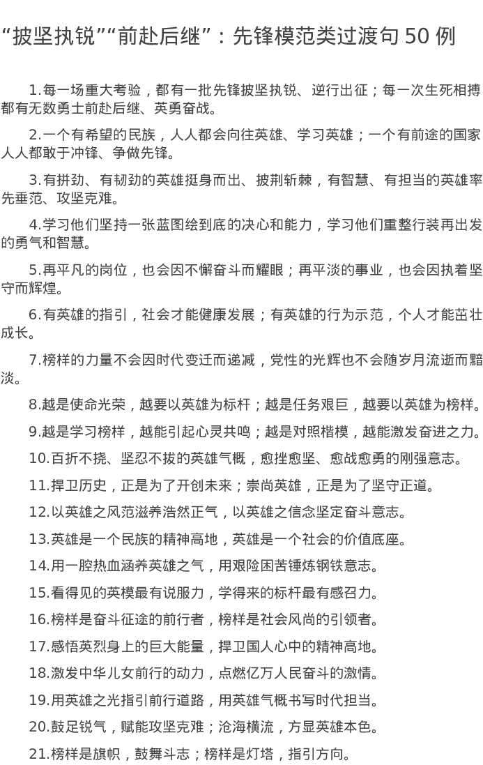 20220727【写作素材】“披坚执锐”“前赴后继”:先锋模范类过渡句50例