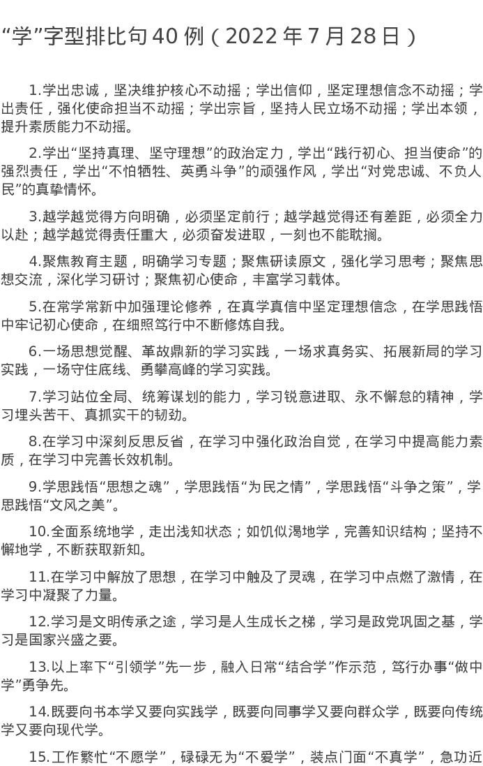 20220728【写作素材】“学”字型排比句40例(2022年7月28日)