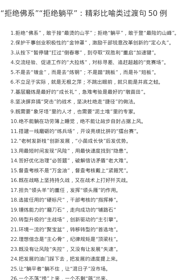 20220729【写作素材】“拒绝佛系”“拒绝躺平”:精彩比喻类过渡句50例