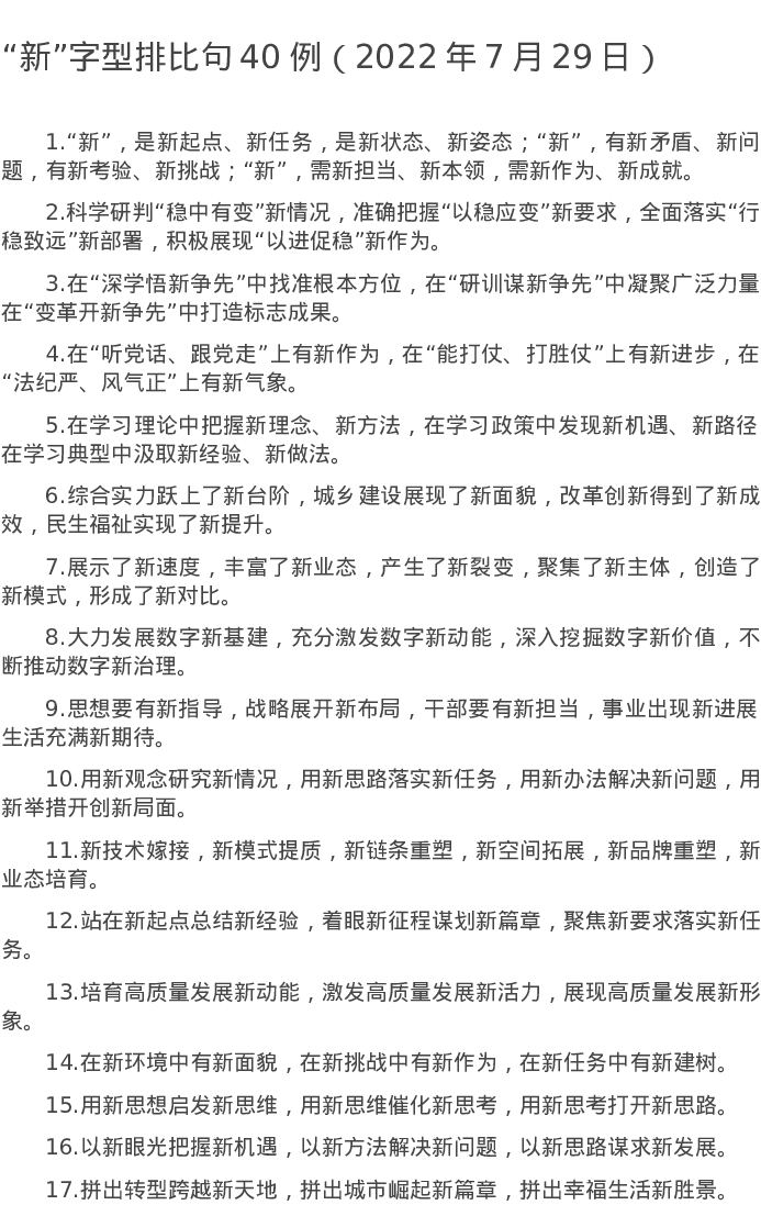 20220729【写作素材】“新”字型排比句40例(2022年7月29日)