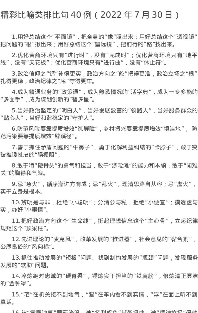 20220730【写作素材】精彩比喻类排比句40例(2022年7月30日)