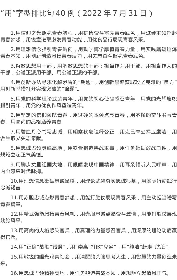20220731【写作素材】“用”字型排比句40例(2022年7月31日)