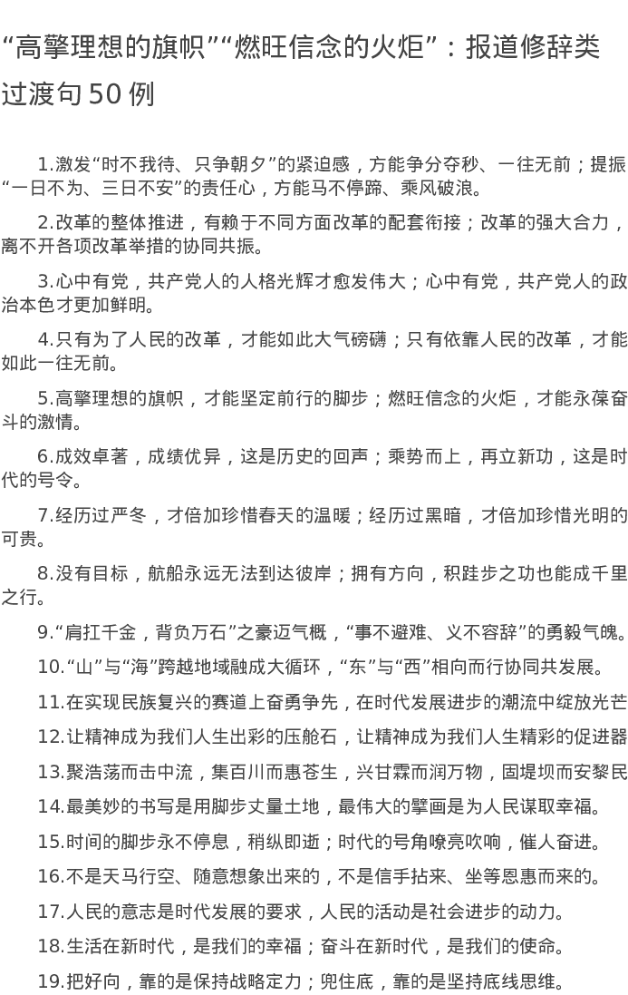 20220801【写作素材】“高擎理想的旗帜”“燃旺信念的火炬”:报道修辞类过渡句50例