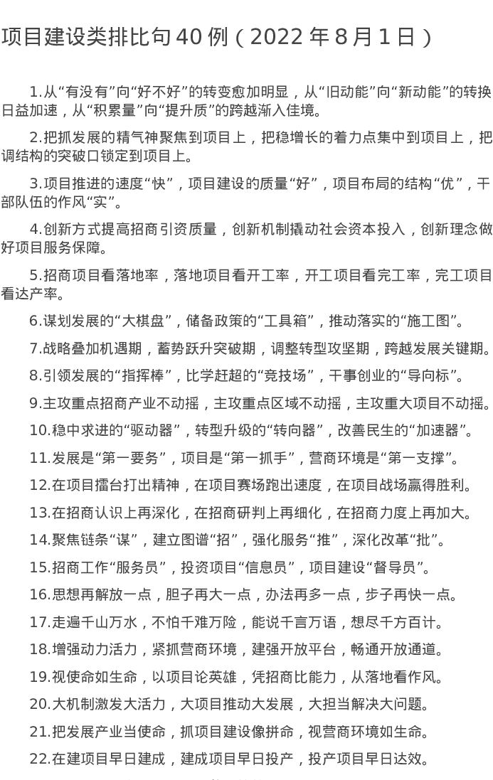 20220801【写作素材】项目建设类排比句40例(2022年8月1日)