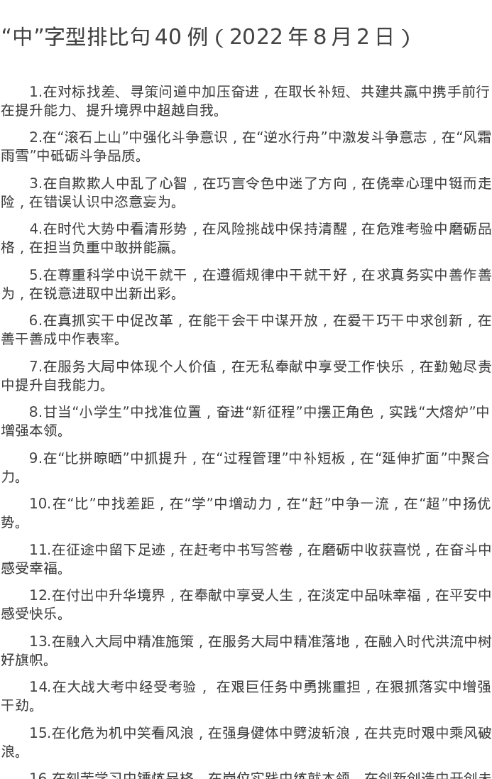 20220802【写作素材】“中”字型排比句40例(2022年8月2日)