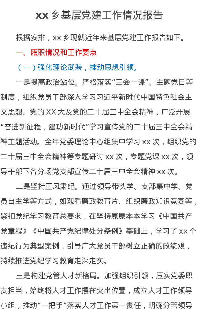 xx乡基层党建工作情况报告
