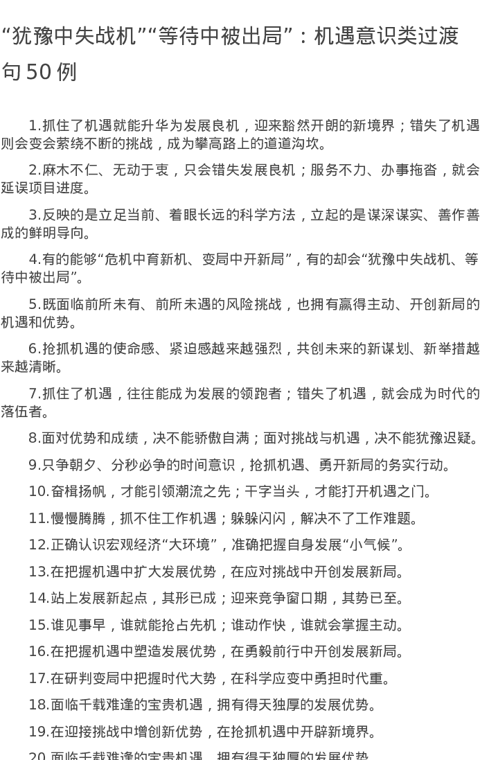 20220802【写作素材】“犹豫中失战机”“等待中被出局”:机遇意识类过渡句50例