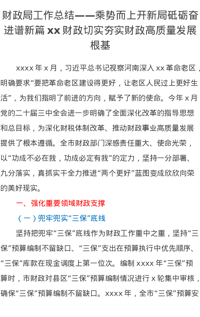 财政局工作总结——乘势而上开新局砥砺奋进谱新篇xx财政切实夯实财政高质量发展根基