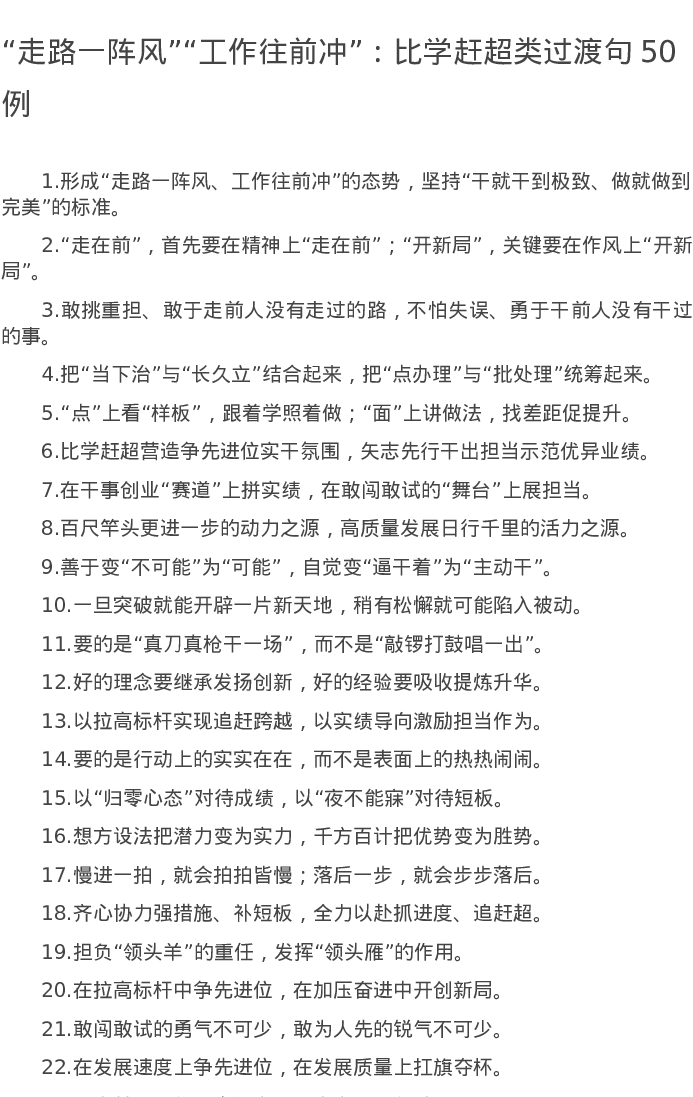 20220802【写作素材】“走路一阵风”“工作往前冲”:比学赶超类过渡句50例