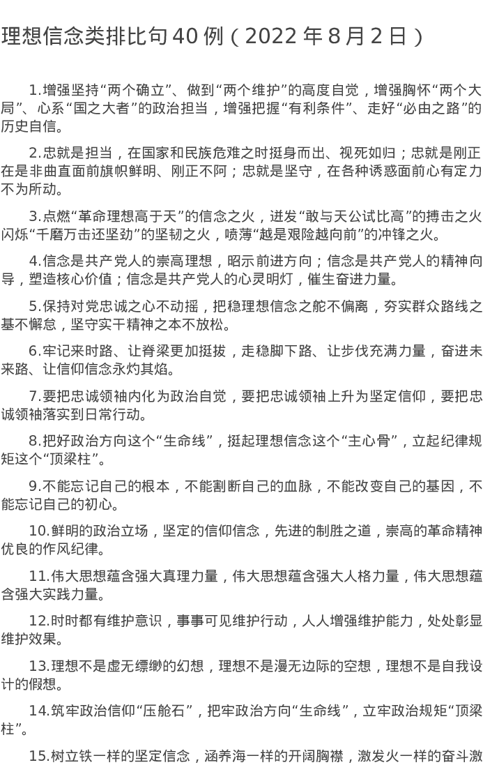 20220802【写作素材】理想信念类排比句40例(2022年8月2日)