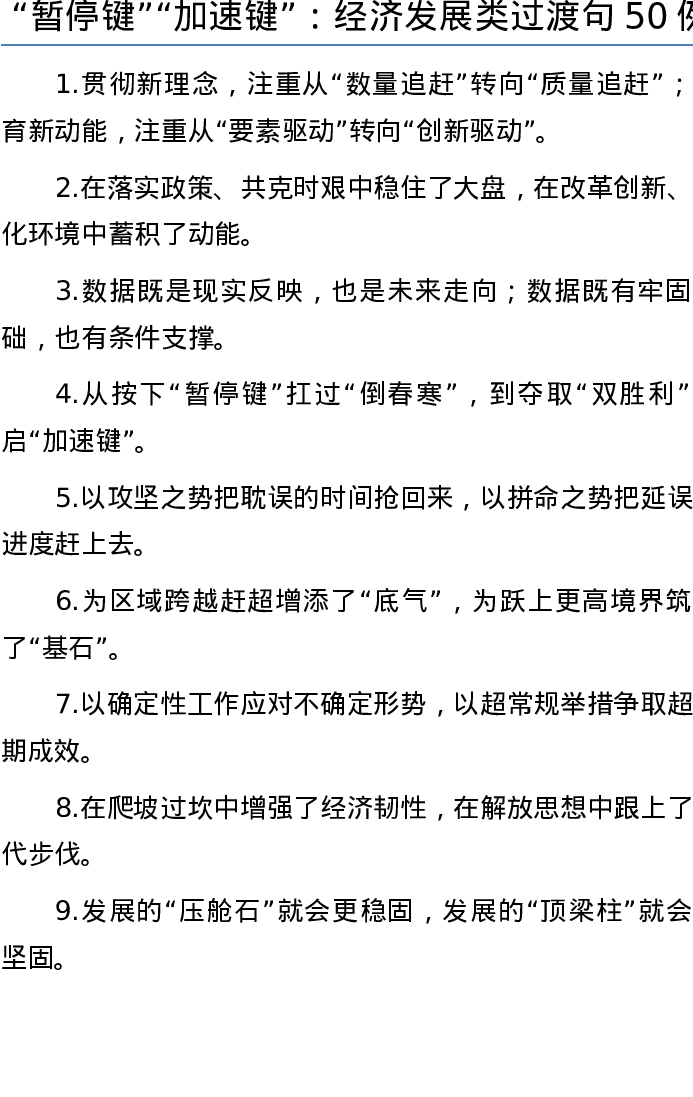 20220803【写作素材】“暂停键”“加速键”:经济发展类过渡句50例