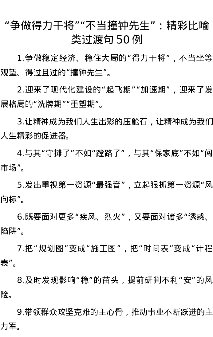 20220813【写作素材】“争做得力干将”“不当撞钟先生”:精彩比喻类过渡句50例